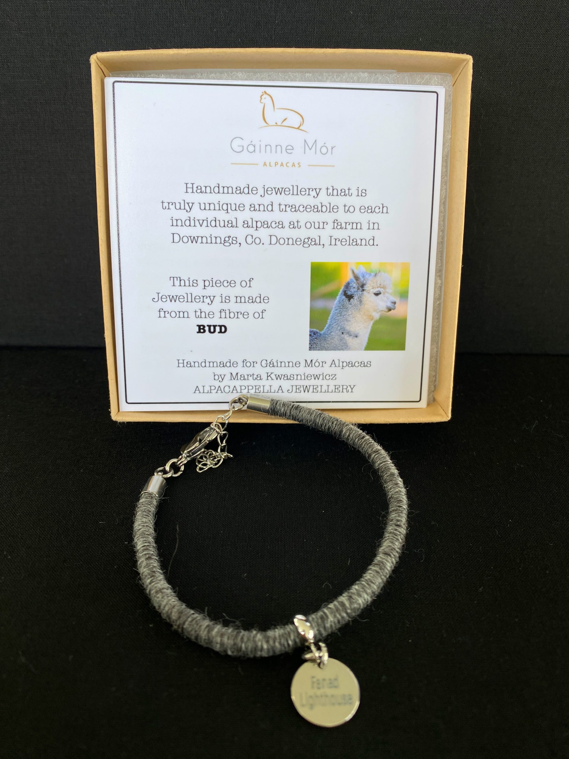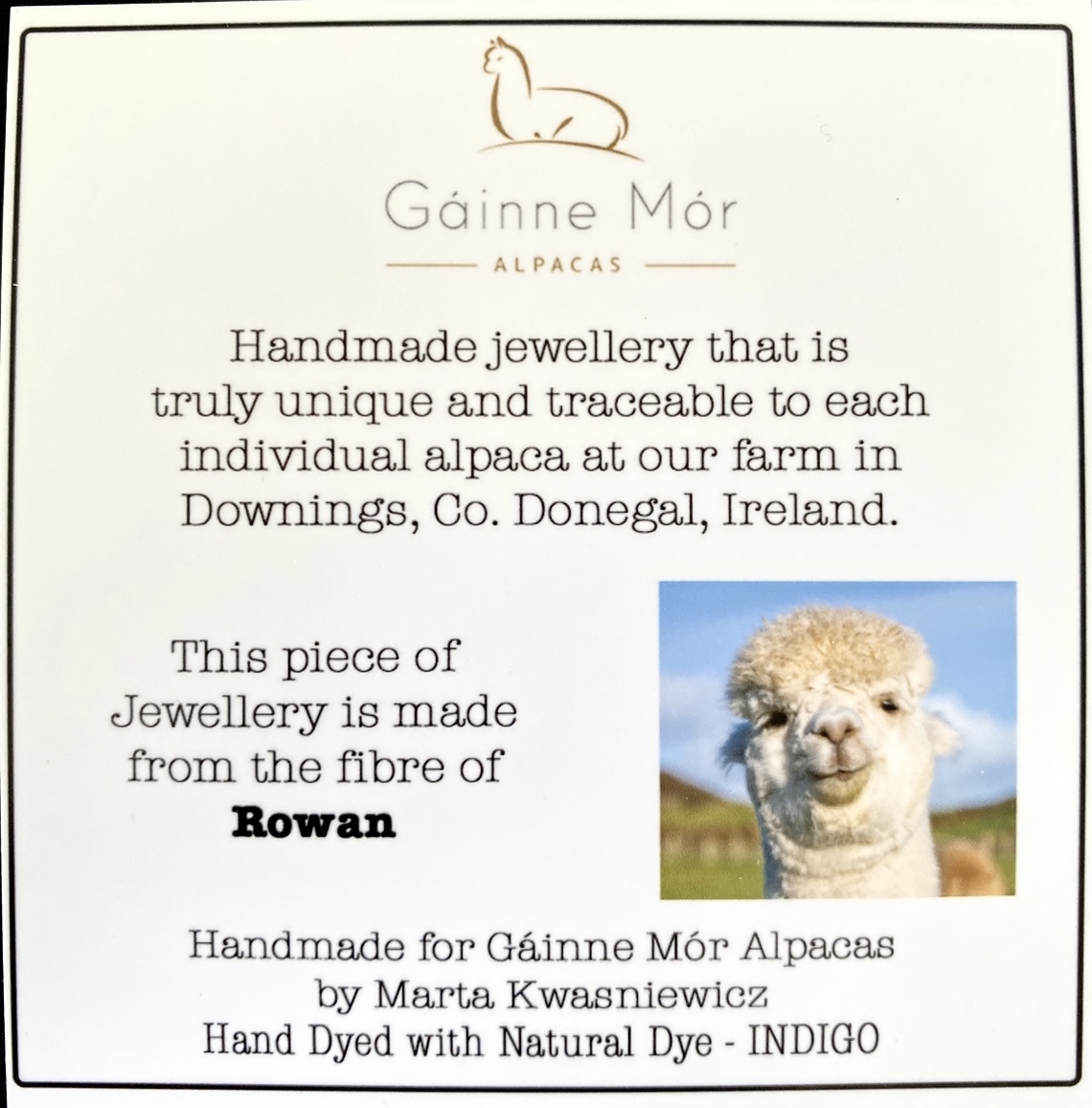 Handmade jewellery that is truly unique and traceable to each individual alpaca at the farm in Downings, Co Donegal.