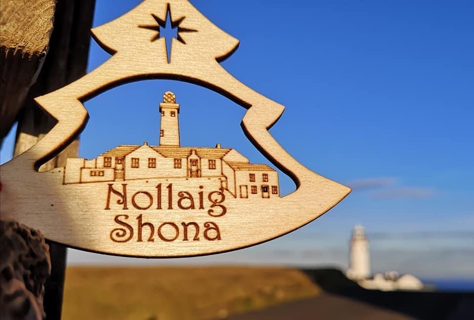 Wooden Christmas decoration crafted by our neighbours at Carraig na Rón, shaped as a Christmas tree.