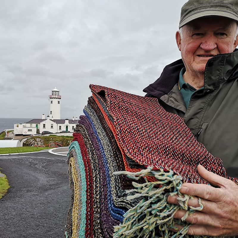 Francis O’Donnell hails from Ardara and is one of the last handweavers of Donegal Tweed in the area, famed for its tweed production. His colourful scarves are ‘hand-warped, hand-woven and hand-washed’, he says. He has been weaving since he was 14, a skill he learnt from his father. Each scarf is a beautiful example of Irish craftsmanship. Available in a variety of colours.
