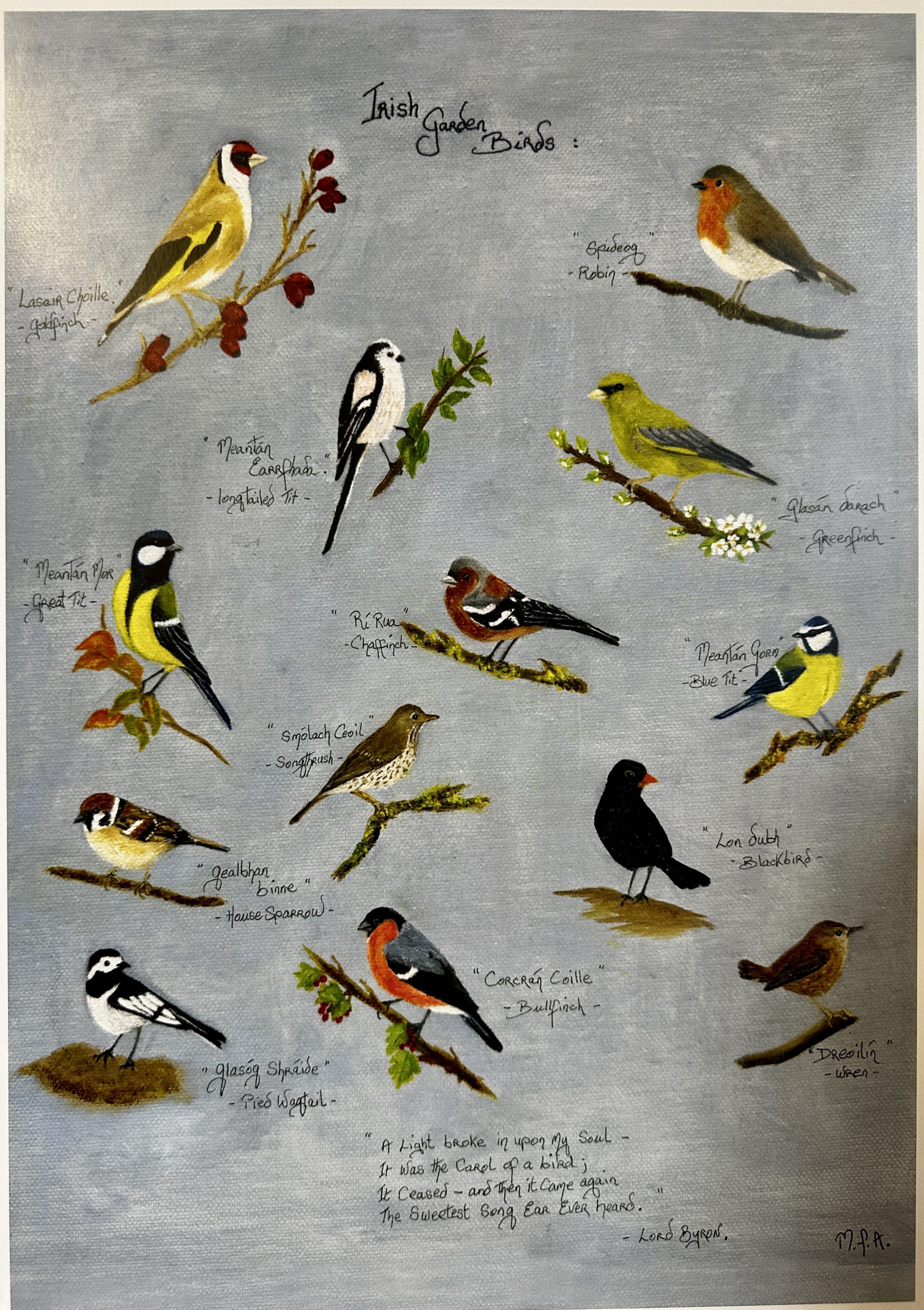Print of Irish Garden Birds by local artist Mary Feenstra Agnew.