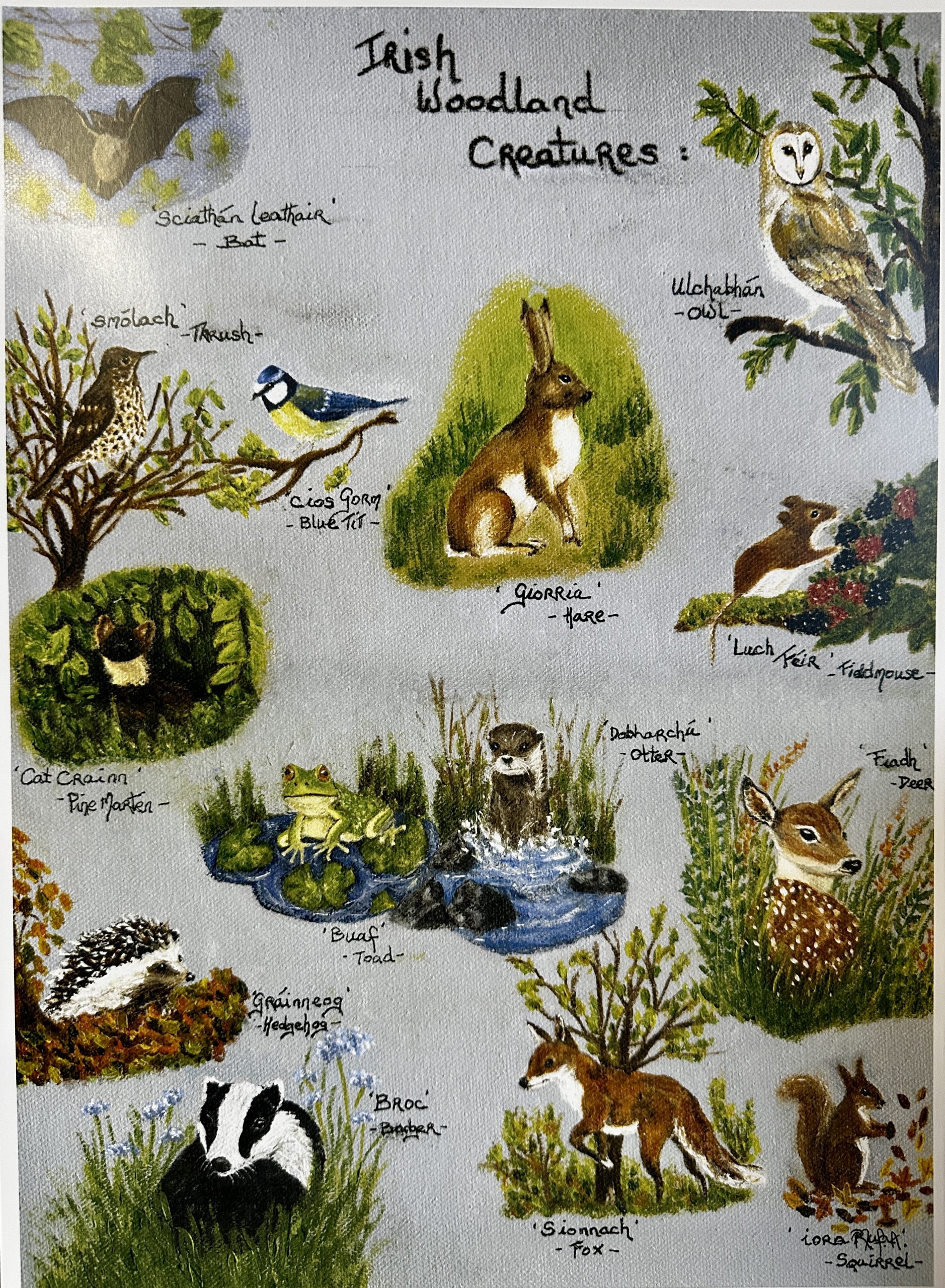 Print of Irish Woodland Creatures by local artist Mary Feenstra Agnew.