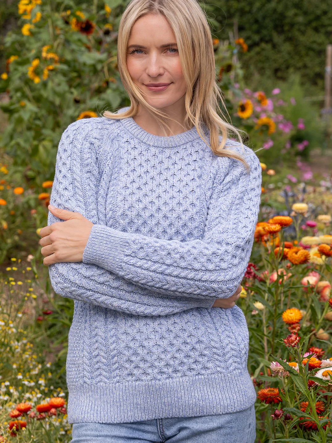 The variety of stitches which make up the original Aran knitting representing fishing , farming , prosperity and the ups and downs of life are all retained but satisfy today’s wearer with up to date shape colour and luxurious soft wool and wool blended with other natural fibres including cashmere in practicable outerwear. Our garments are made to last and are a part of Irish traditional culture which we want you to appreciate and enjoy.
